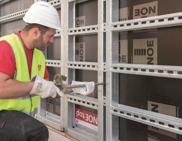 NOEtop EinsA wytrzyma parcie betonu do 60 kN/m2. Ten nowy produkt jest idealny dla wszystkich firm, które już posiadają panele NOEtop i które teraz chciałaby skorzystać z systemu ściągów jednostronnych. Nie muszą się one zaopatrywać w nowy system deskowań. Zamiast tego, mogą użyć systemu płyt, które już posiadają i które im tak dobrze służyły na wielu budowach. Najodpowiedniejszy system to płyty NOEtop o dużej powierzchni ze zintegrowanymi pasami usztywniającymi. Wystarczy tylko zamocować w profilu tylną nakrętkę uchylną, która utrzymuje koniec stożkowego ściągu lub przednią nakrętkę nastawczą. Mocowanie uzupełniające pozwala na zastosowanie standardowych tarcz. Istnieje możliwość wyprodukowania wszystkich dostępnych rozmiarów płyt jako standardowe do użycia wraz z NOEtop EinsA.