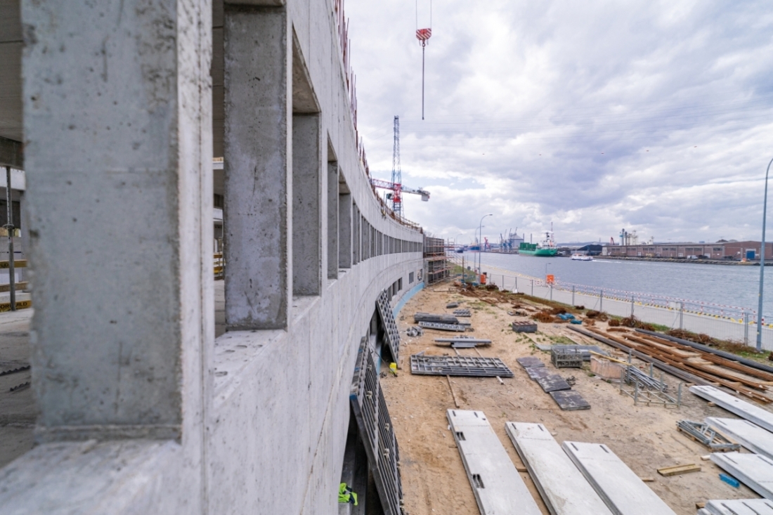 NOEtop na 7-metrowych ścianach łukowych na budowie Centrum Offshore w Porcie Gdańsk