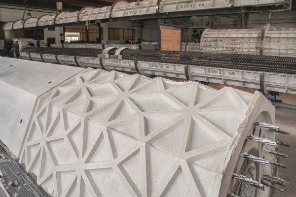 Ponieważ kolumny są różnych rozmiarów NOE-Schaltechnik dostosował gwiezdny wzór w szalunkach tak, by pasował do kolumn różnych wymiarów. W efekcie uzyskano reliefy wyglądające jak piękne, jednolite obwódki. Szablon motywu arabeskowego został stworzony przez ekipę projektową. NOE-Schaltechnik wyprodukował matryce pojedynczo, zgodnie z wymaganiami architektów. Ponad to, poza specjalnymi motywami, producent oferuje również szeroką gamę standardowo teksturowanych matryc. Obejmują one różne kamienne i murarskie struktury, motywy kwiatowe i wiele więcej. Matryce te zapewniają prosty sposób na nadanie wewnętrznym lub zewnętrznym powierzchniom betonowym zindywidualizowanego wyglądu. Robotnicy pracujący przy maszynach po wyjęciu kolumn z szalunków, przekazują je do dalszego procesu, podczas którego powierzchnia jest sprawdzana, jakiekolwiek nadlewki usuwane a kolumny zostają starannie zapakowane i przygotowane do transportu.