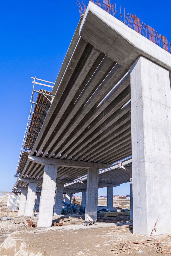 Na jednej z 7 osi podparcia ustroju nie można było oprzeć belek prefabrykowanych na łączącej filary poprzecznicy. Konieczne było przeniesienie całego obciążenia z 64 prefabrykowanych belek "T" o długościach dochodzących do 27 metrów na fundamenty. Idealny okazał się system wysokonośnych podpór z systemu NOE LS200. Każda podpora NOE LS200 jest w stanie, w zależności od długości, przenieść obciążenie do 200 kN. Konstrukcję wsporczą uzupełniono o HEBy łączące cały układ oraz podnośniki klinowe, które umożliwiły łatwiejszy demontaż po zakończeniu prac.