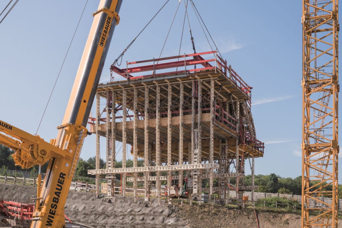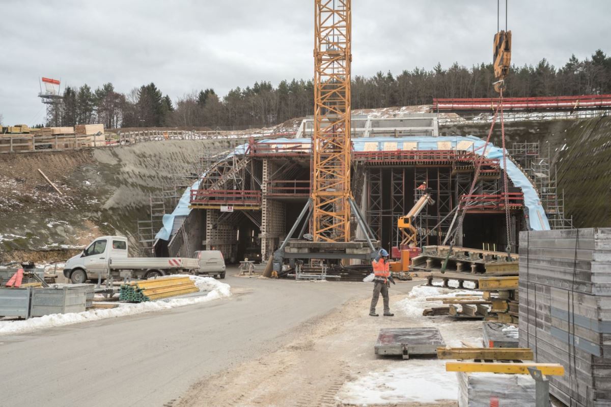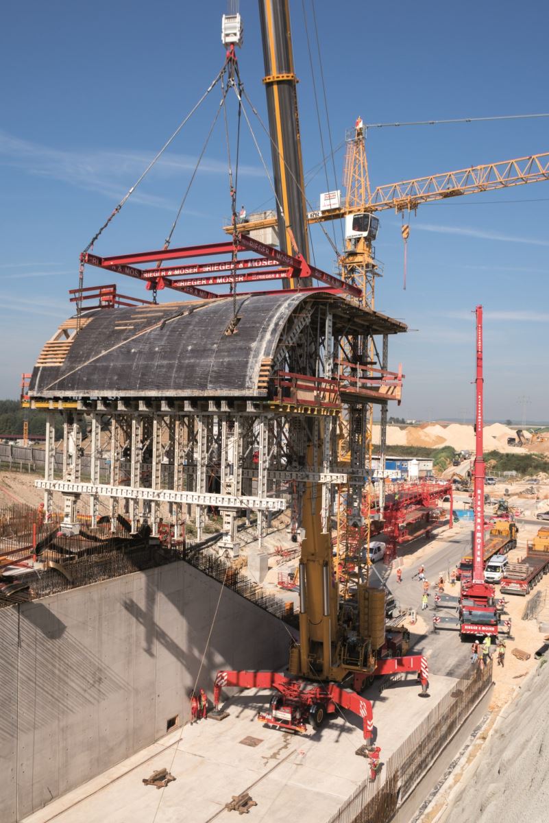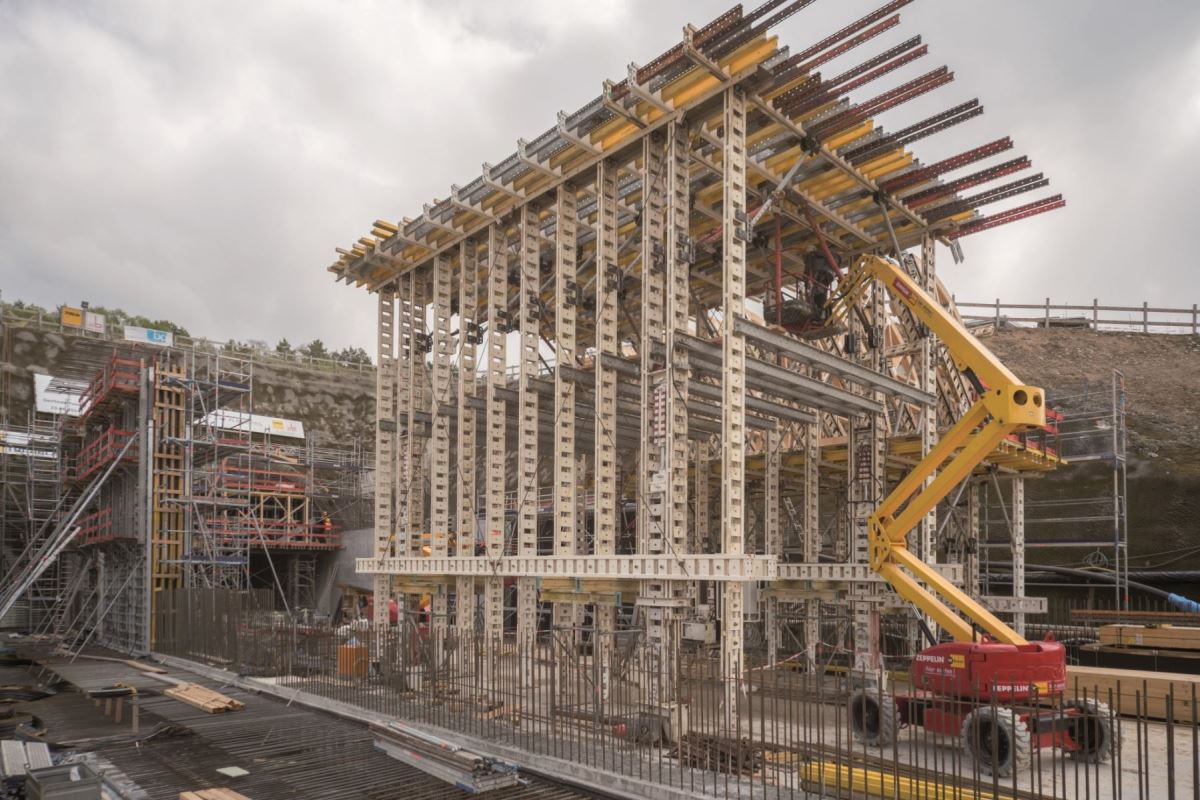 W portalu o długości około 50 m zastosowano wózek szalunkowy NOEtec. Po betonowaniu pierwszej nawy wózek szalunku został przeniesiony do drugiej. Wdrożenie odbyło się w zaledwie 15 minut i zostało z góry zaplanowane przez istne arcydzieło logistyczne. Spowodowało to znaczną oszczędność czasu i kosztów. Do ścian bocznych zastosowano szalunek wielkopowierzchniowy NOEtop, a do poprzeczek szalunek ścienny NOEalu L.Klient: