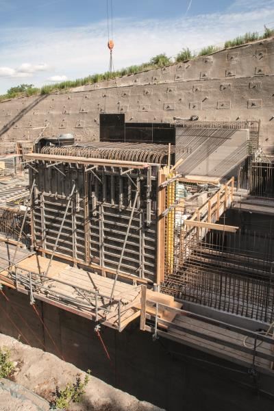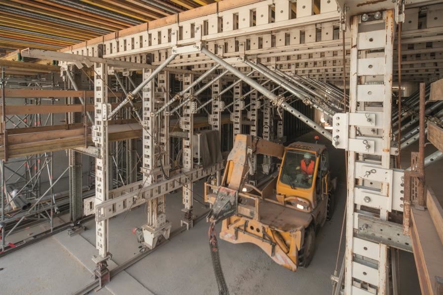 Chociaż wózek szalunkowy NOEtec wygląda niepozornie, jest on w stanie dźwigać ogromne ciężary. Na przykład przy betonowaniu jednego odcinka dachu musi przejąć ciężar ok. 360 ton.