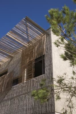 Powierzchnie fasad budowli w przeważającej części tworzy strukturalny beton architektoniczny, ukazujący relief o wyglądzie wiązek trzciny. W ten sposób architekt przypomniał o 700-letniej tradycji budownictwa w Camargue. Bazuje ono na wykorzystywaniu trzciny jako organicznego materiału budowlanego i stąd w przeszłości stanowiła źródło przychodów dla kobiet. Ponieważ głównie ich zadaniem były wyprawy na bagna i zbieranie tam łodyg trzciny. Po ścięciu sierpem z długim uchwytem trzcina była transportowana łodzią na ląd, gdzie następnie była układana w wiązki i wiązana sznurem lub drutem. To organiczne tworzywo można było wykorzystywać do krycia dachów, do izolacji, a nawet do wznoszenia ścian. Elementy budowlane wykonane z tego materiału często miały charakterystyczny relief. I właśnie ten motyw przejął architekt François Fontes i zbudził do nowego życia na wykonanych z betonu architektonicznego fasadach kompleksu budowli we Francji. Przy realizacji tego niezwykłego wyglądu powierzchni w betonie zastosował on matryce strukturalne NOEplast firmy NOE-Schaltechnik.