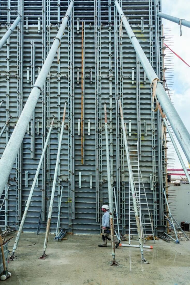 Ściany o wysokości 15,3 m wylane w jednym betonowaniu.