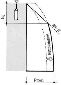 Zależność między głębokością wibrowania HR i parciem mieszanki betonowej P max można przedstawić następująco: wszyscy fachowcy zgadzają się na przyjęcia założenia, że do głębokości wibrowania lub obszaru w którym to wibrowanie występuje mieszanka betonowa wytwarza parcie hydrostatyczne wynikające z masy betonu ( DIN 4235 ).
