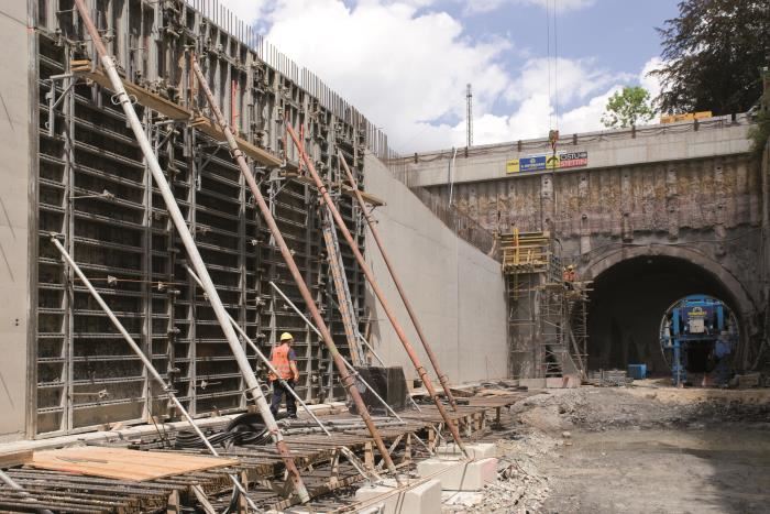 Przy budowie tunelu w Schwäbisch Gmünd zdecydowano się na system szalowania ścian NOEtop. System ten zastosowano przy betonowaniu