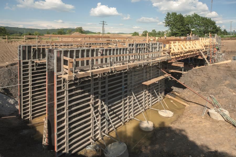 Szalunek ścienny NOEtop umożliwił betonowanie mostu w jednym takcie przy budowie obwodnicy Süssen B 466