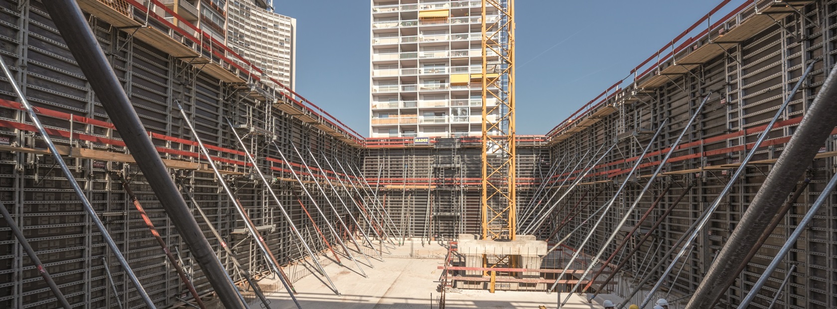 Deskowania ścienne to modułowe systemy, które podczas wiązania betonu nadają mu precyzyjny kształt i zapewniają wymaganą wytrzymałość konstrukcji. W zależności od potrzeb stosuje się rozwiązania ramowe lub dźwigarowe - zaprojektowane z myślą o stabilności, bezpieczeństwie i szybkim montażu na dużych powierzchniach. NOE oferuje dopracowane systemy o wysokiej trwałości i elastycznej konfiguracji, spełniające wymagania dotyczące jakości powierzchni betonu w wielu zastosowaniach.
